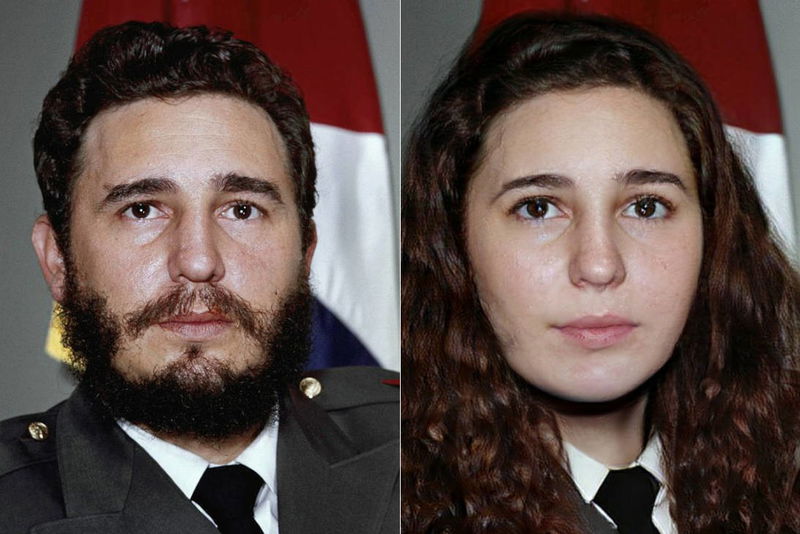Fidel e la versione speculativa femminile di Fidel (Fidelia) fatto con Face App.