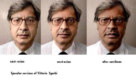 Il 26 giugno 2014 su Deviantart postai le versioni speculative di Vittorio Sgarbi in versione asiatico dell’Est , asiatico dell’Ovest e Afro-Caraibico. Si trattava di questo tool https://web.archive.org/web/20080118204533/https://faceofthefuture.org.uk/ .